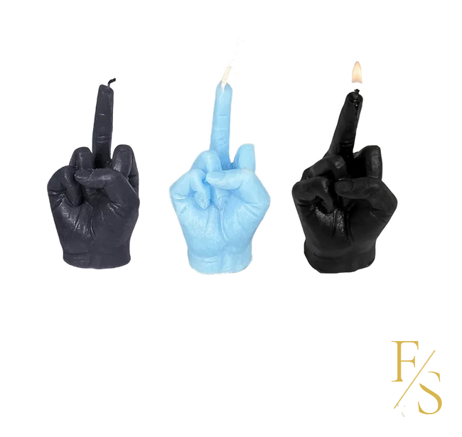 Handgefertigte Wachskerze im Mittelfinger-Style