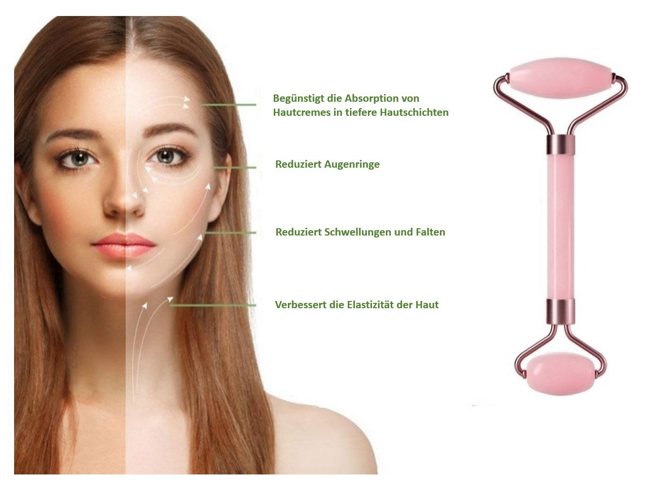 Unser Anti-Aging-Roller fördert die Durchblutung des Gewebes und sorgt bei regelmäßiger Anwendung für eine Reduktion von Schwellungen und der Faltenbildung.