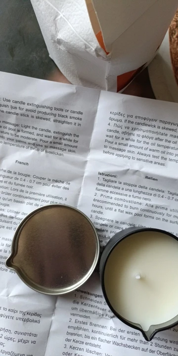 - Anwendung: Kerze anzünden, einige Minuten schmelzen lassen. Flüssiges Öl in die Hand gießen und sanft in die Haut einmassieren.