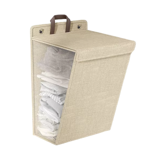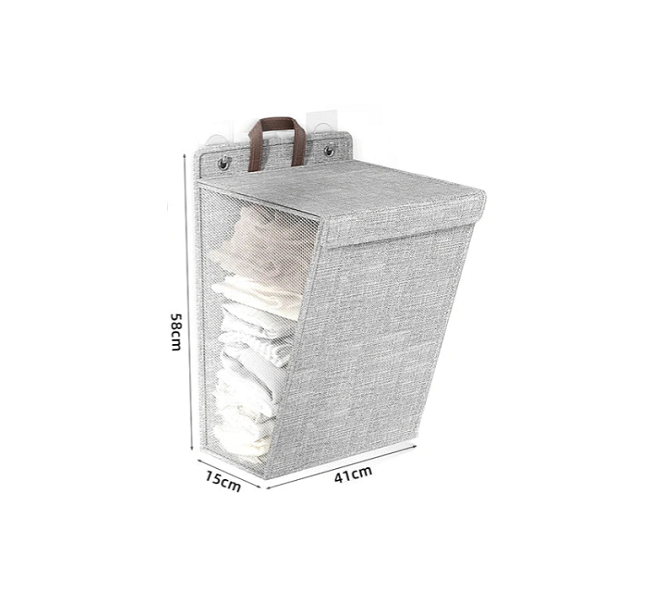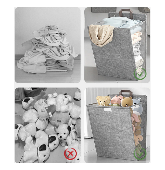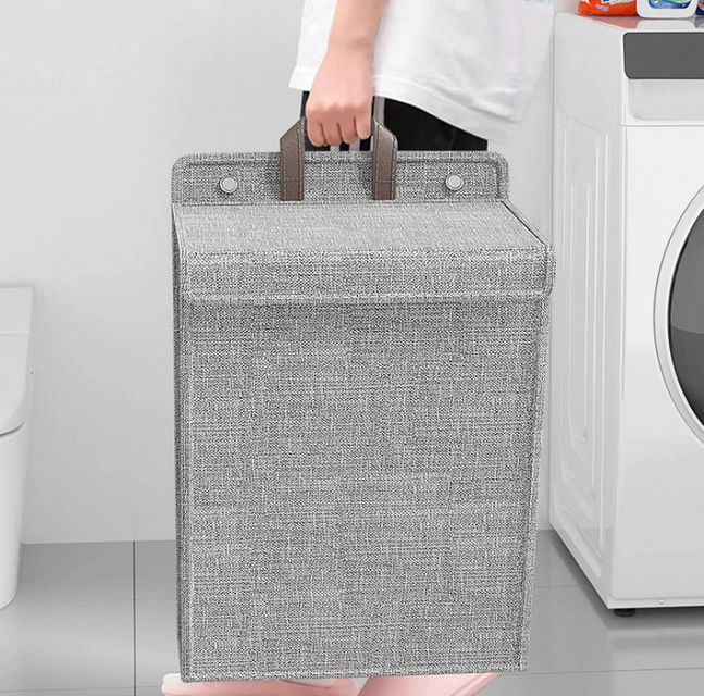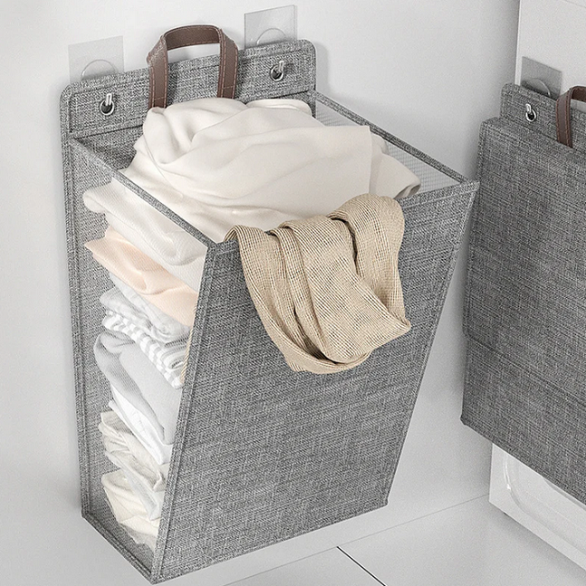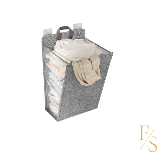 Entdecke jetzt die innovative Lösung für Deine Wäsche: unser faltbarer Wäschekorb, der bequem an der Wand aufgehängt werden kann!