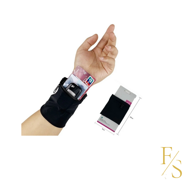 „Sicher verwahrt“: Stylishes Sport-Armband mit praktischer Aufbewahrungstasche mit Reissverschluss