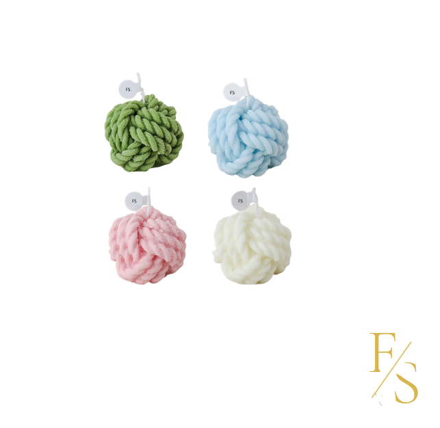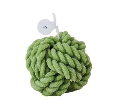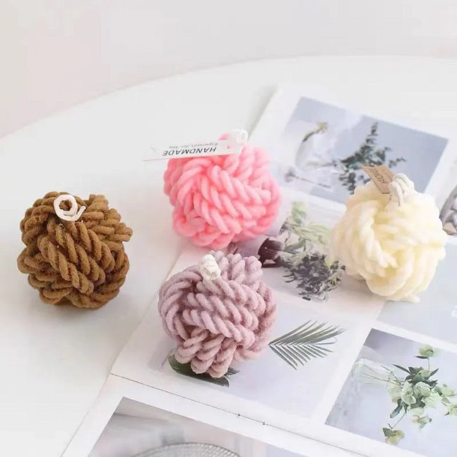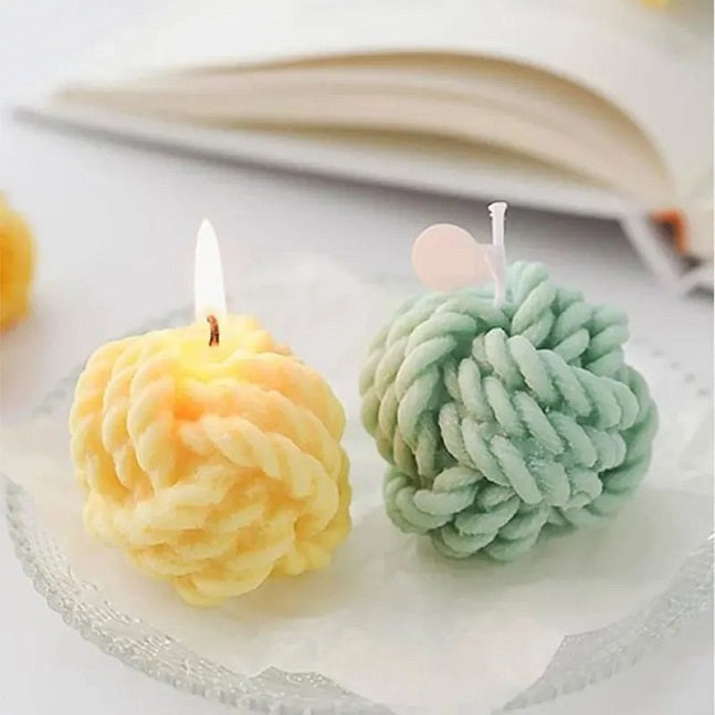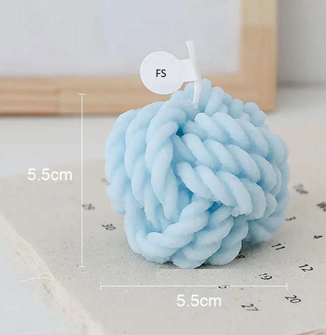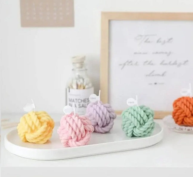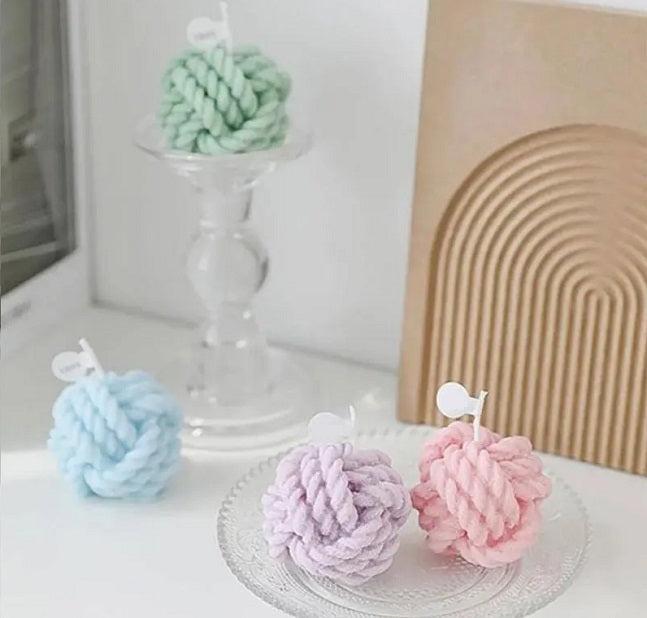 Stylische Kerze im Wollknäuel-Knoten-Design