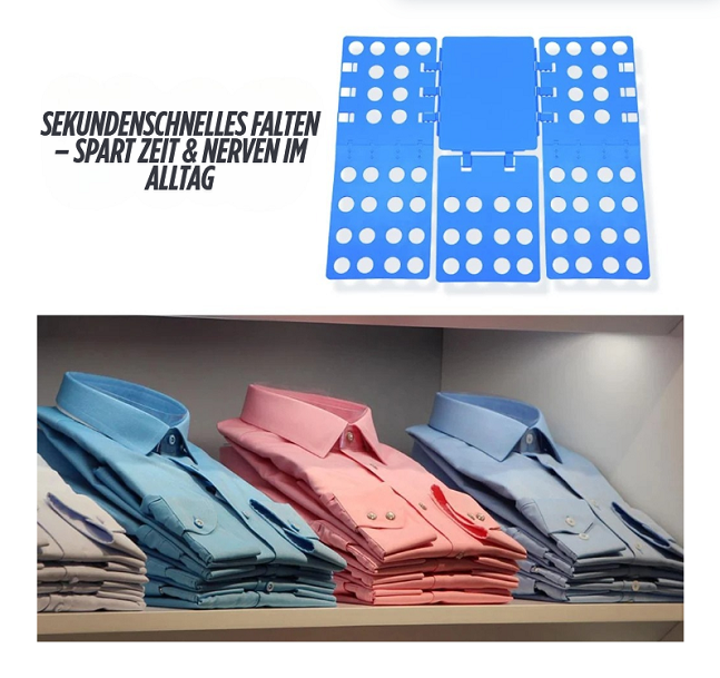 ▪ Für Shirts, Hemden & Hosen – universell einsetzbar für alle Kleidungsstücke ▪ Sekundenschnelles Falten – spart Zeit & Nerven im Alltag ▪ Verstellbares Design – passt sich an verschiedene Größen & Kleidungsarten an ▪ Extrem stabil & langlebig – robuster Kunststoff für langjährige Nutzung ▪ Kompakt & tragbar – ideal für Reisen, Camping oder Umzüge ▪ In verschiedenen Farben erhältlich – für noch mehr Style im Alltag |